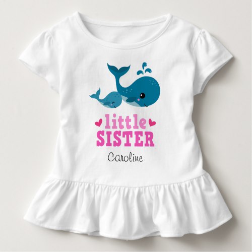 Little sister t-shirt with cute whales and name
